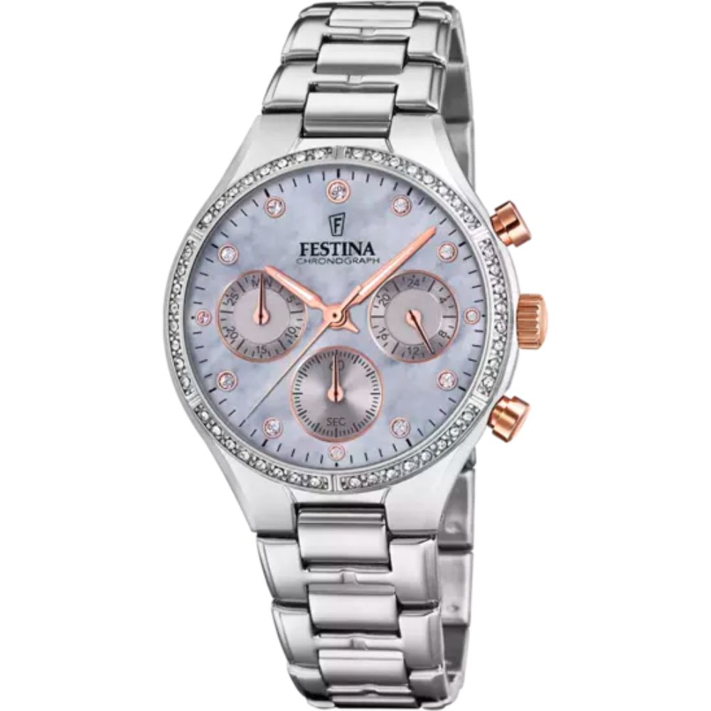 Festina je renomirani brend satova sa dugom tradicijom, poznat po vrhunskom spoju elegancije, preciznosti i inovativnog dizajna. Kompanija sa sjedištem u Barseloni, koristeći švajcarsku tehnologiju izrade postala je jedan od globalnih lidera u industriji – od klasičnih modela za svakodnevno nošenje do sportskih kolekcija namenjenih avanturistima, Festina nudi modele za sve generacije. Svaki sat je izrađen s posebnom pažnjom na detalje, koristeći visokokvalitetne materijale kako bi pružio dugotrajnost i udobnost.
