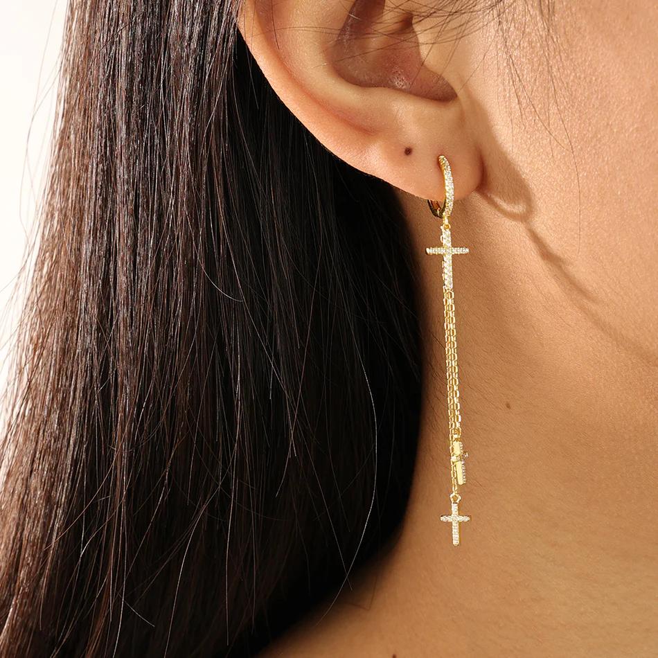 Dameo minđuše Cross - srebro sa pozlatom i cirkoni FE2211