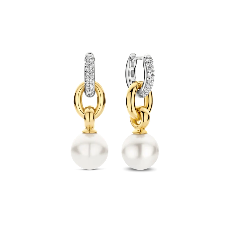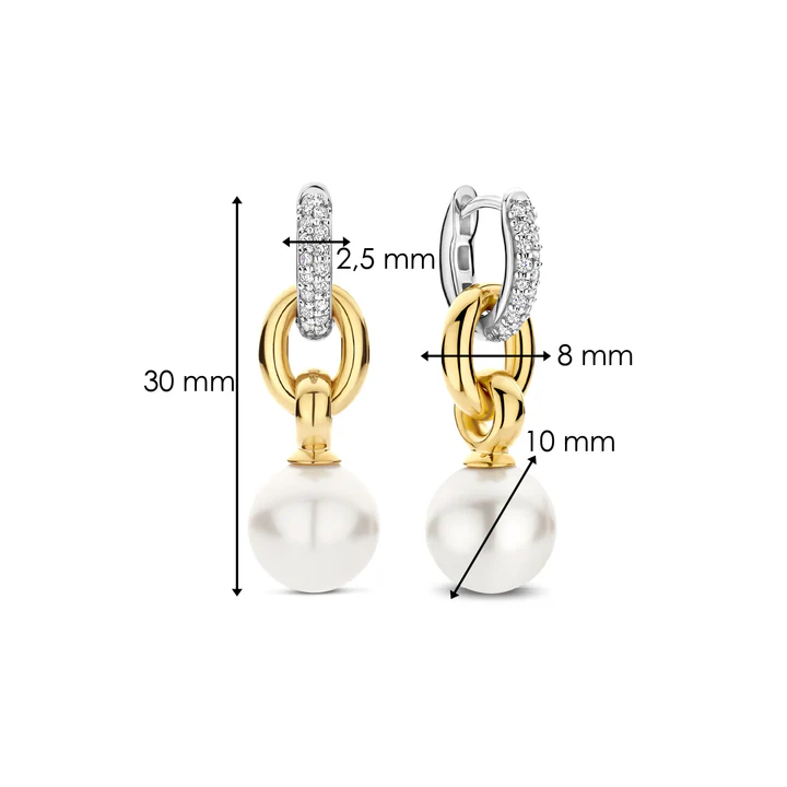 TI SENTO minđuše sa zlatnom pozlatom i visećim biserima 78016YP predstavljaju smjelu fuziju klasične elegancije i savremenog stila. Izrađene od visokokvalitetnog srebra finoće 925, ove minđuše sadrže međusobno povezane elemente sa žutom pozlatom, čije glatke, skulpturalne forme stvaraju upečatljiv vizuelni efekat.