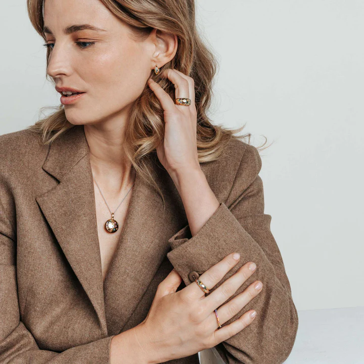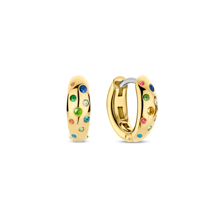 Izrađene od visokokvalitetnog srebra finoće 925 i obložene toplim slojem žutog zlata, ove alke su razigrano ukrašene višebojnim cirkonima – duboke plave, raskošne zelene, tople ćilibarne i nježno roze nijanse – koje podsjećaju na živopisne boje sunčanog ljeta.