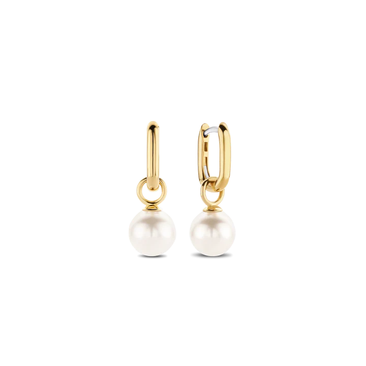 Ove TI SENTO pozlaćene srebrne minđuše krase dvije blistave bijele perle koje vise s obruča prekrivenih slojem žutog zlata. Izrađene od srebra finoće 925, ove minđuše inspirisane su ljetom na sunčanom italijanskom ostrvu Kapri. Njihove sjajne bijele perle odišu prefinjenom elegancijom.