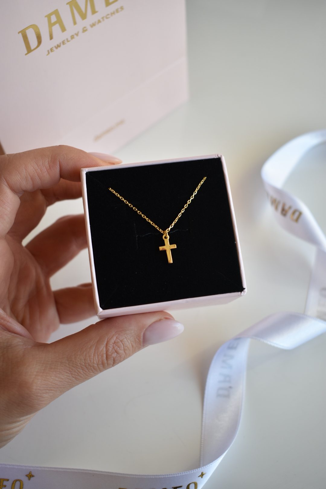 Ogrlica od srebra sa pozlatom, sa priveskom u obliku krsta, simbol vjere, nade i zaštite.