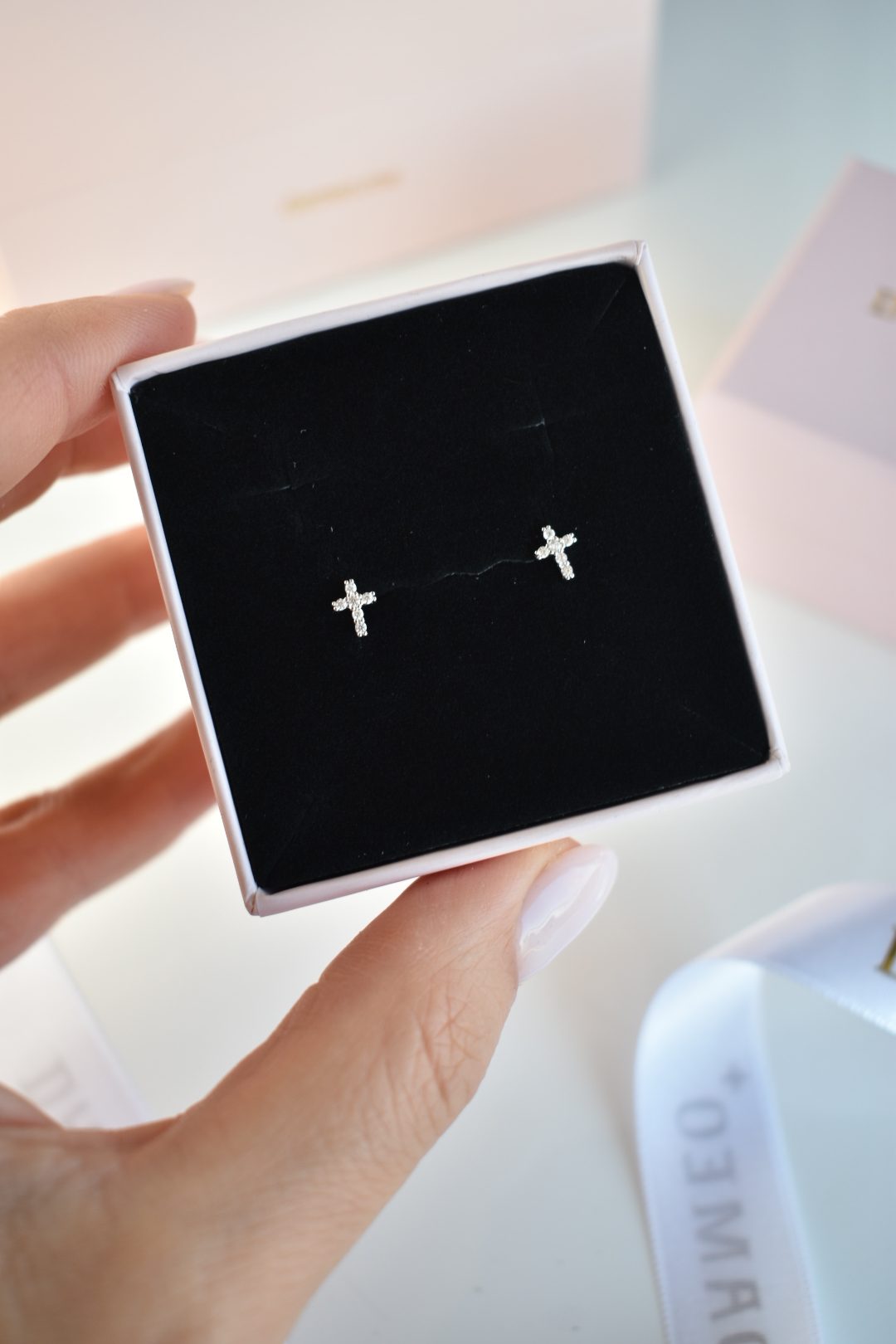 Dameo minđuše Little Cross – srebro 925 i cirkoni
