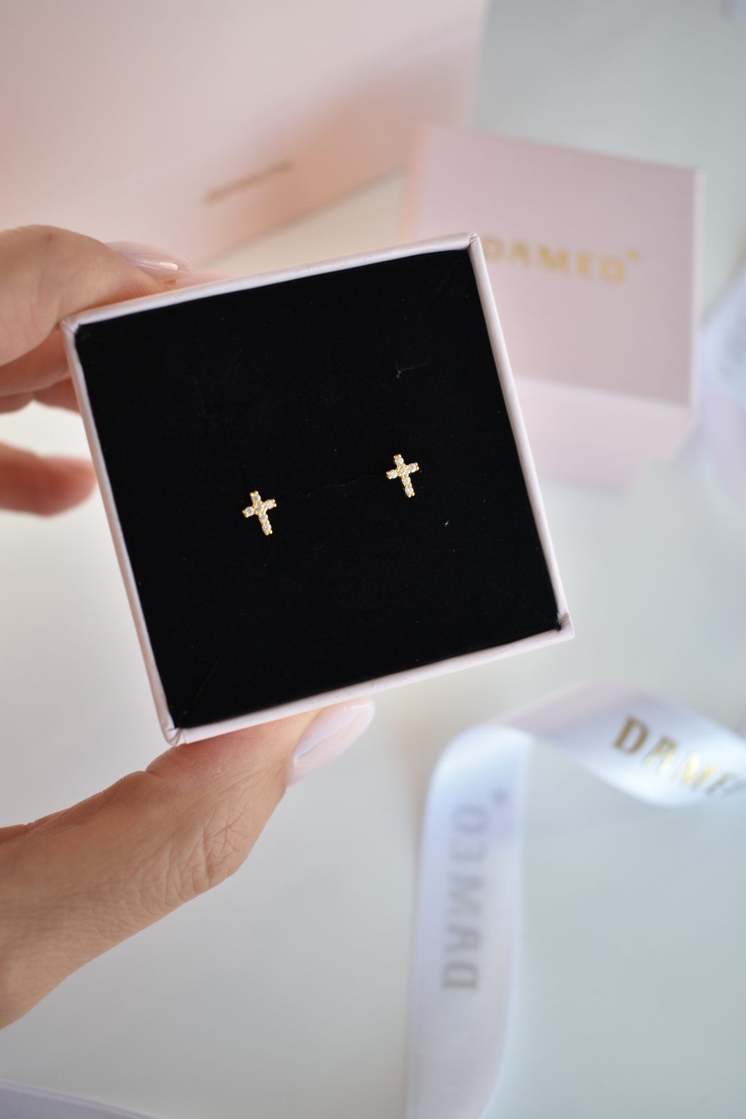 Dameo minđuše Little Cross – srebro 925 sa pozlatom i cirkoni