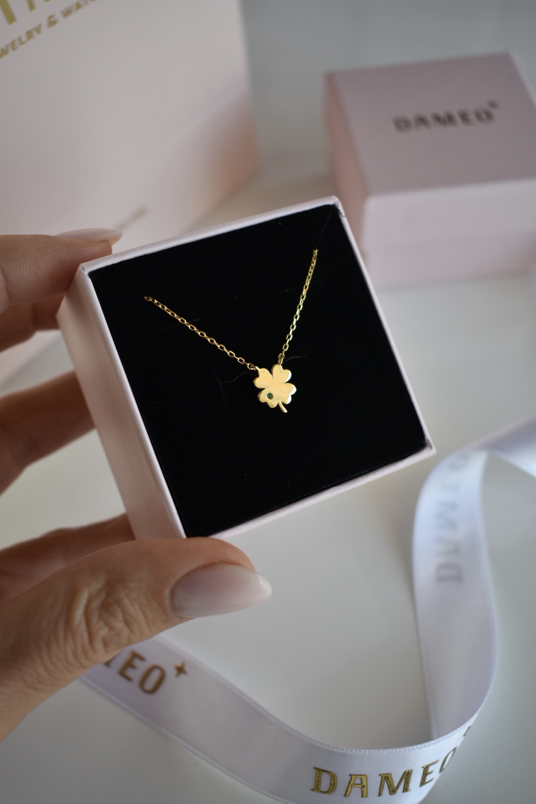 Djetelina sa četiri lista je univerzalni simbol sreće. Vjeruje se da svaki list predstavlja nešto pozitivno : vjeru, nadu, ljubav i sreću. Zato je ogrlica idealna kao poklon za drage osobe.