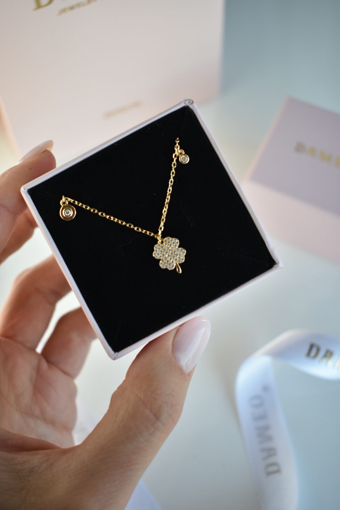Djetelina sa četiri lista je univerzalni simbol sreće. Vjeruje se da svaki list predstavlja nešto pozitivno : vjeru, nadu, ljubav i sreću. Zato je ogrlica idealna kao poklon za drage osobe.