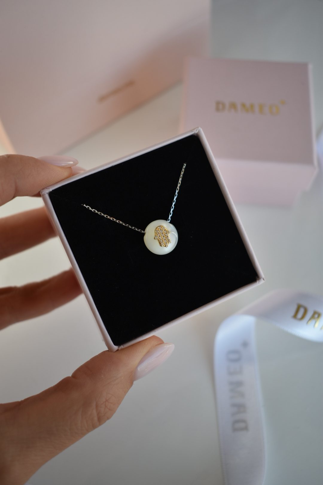Ogrlica Lucky Hand – srebro 925 sa pozlatom i sedefom