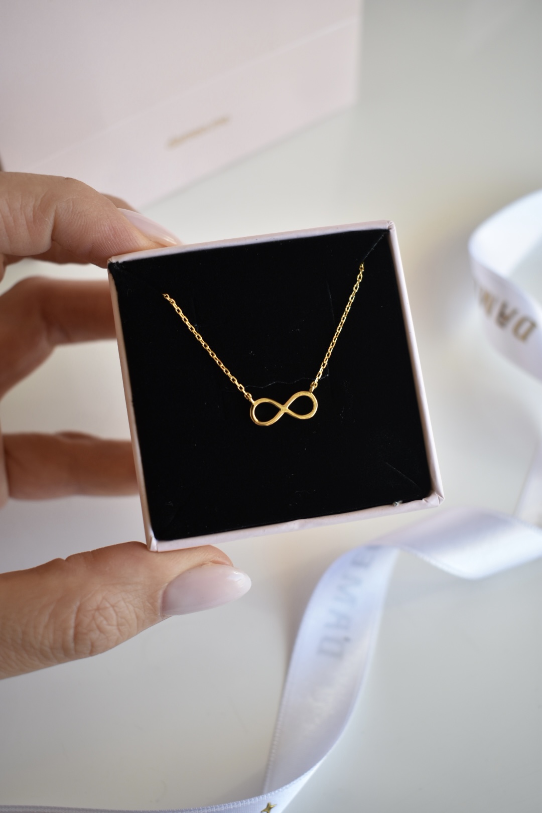Infinity je simbol beskrajne ljubavi i prijateljstva. Ogrlica od srebra finoće 925 sa pozlatom, i privjeskom u obliku Infinity znaka koji je savršen poklon za one koje volite.