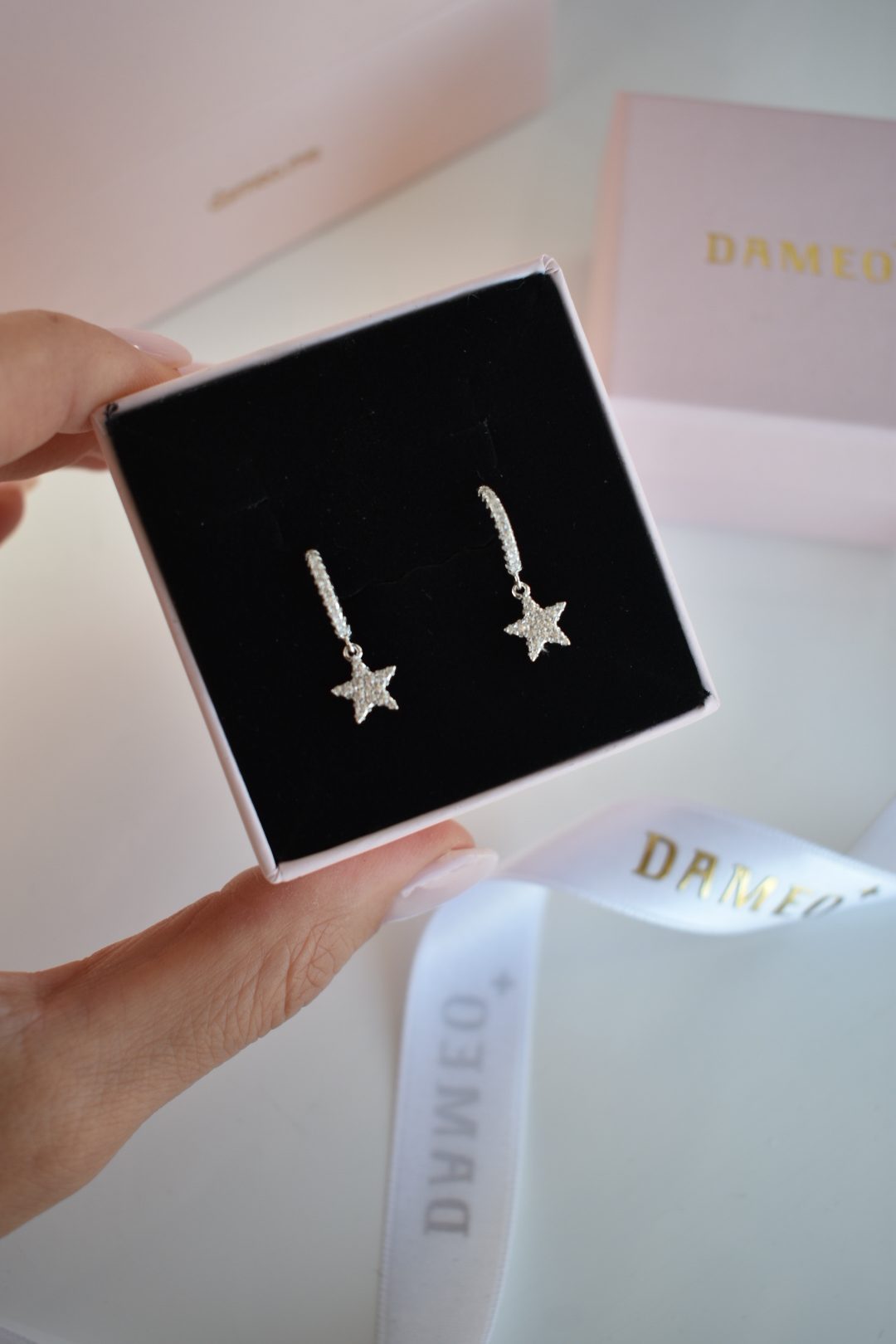 Minđuše od srebra u obliku zvijezde ukrašene svjetlucavim cirkonima. Elegantne i diskretne, mogu se nositi u svakoj prilici.