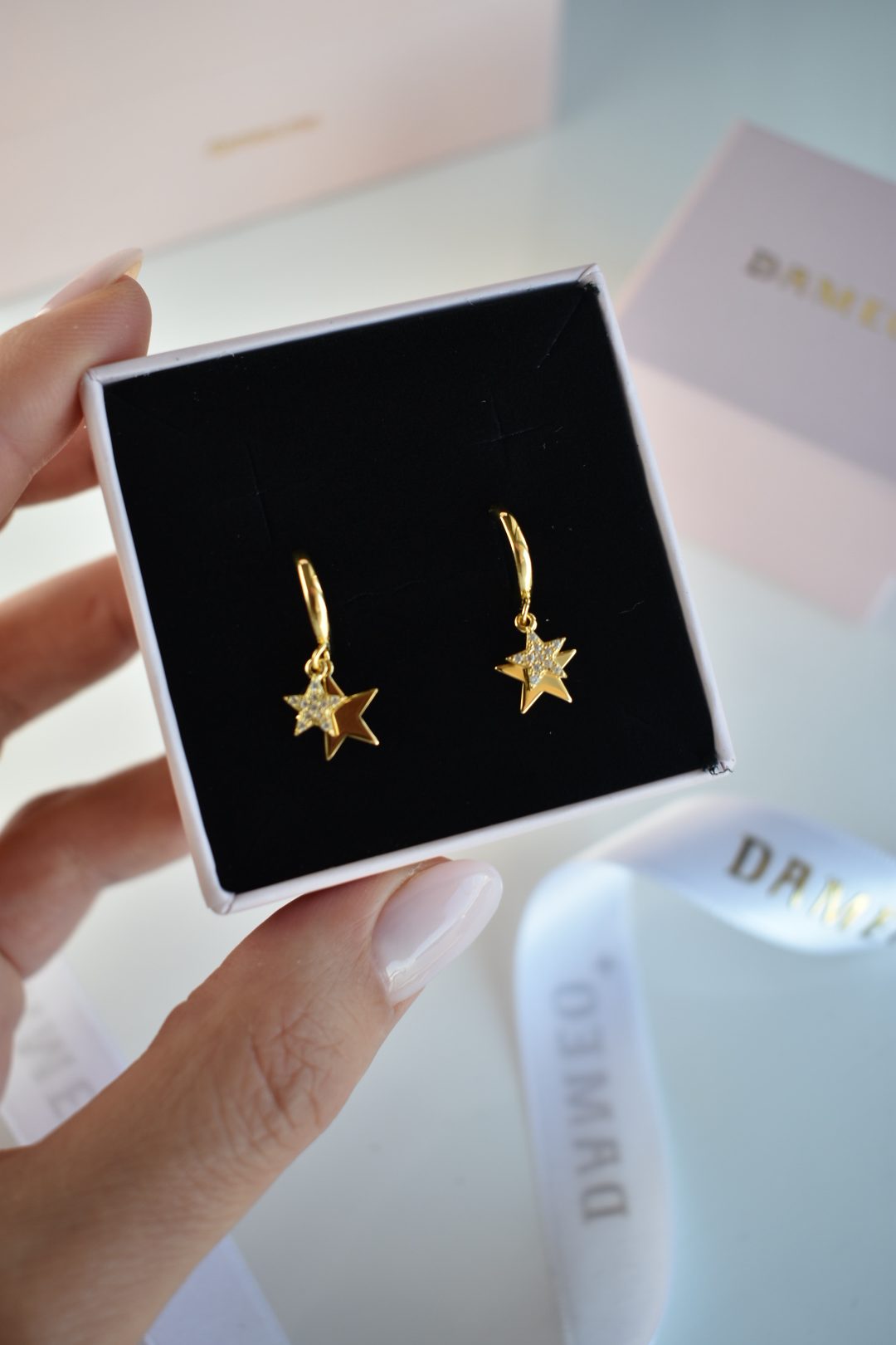 Minđuše od srebra sa pozlatom u obliku zvijezde ukrašene svjetlucavim cirkonima. Elegantne i diskretne, mogu se nositi u svakoj prilici.
