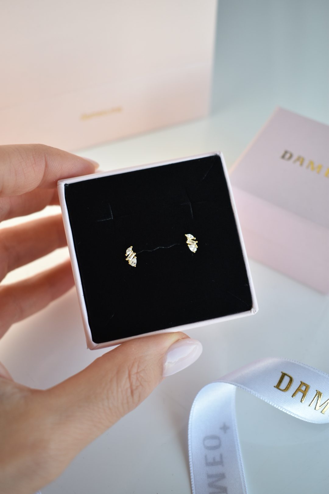 Ove minđuše od tri cirkona spajaju različite oblike u savršenu harmoniju. Svaki cirkon, jedinstvenog oblika, reflektuje svjetlost na svoj način stvarajući blistav i upečatljiv efekat. Minimalizam i luksuz u jednom, savršene za svakodnevno nošenje ili posebne prilike.