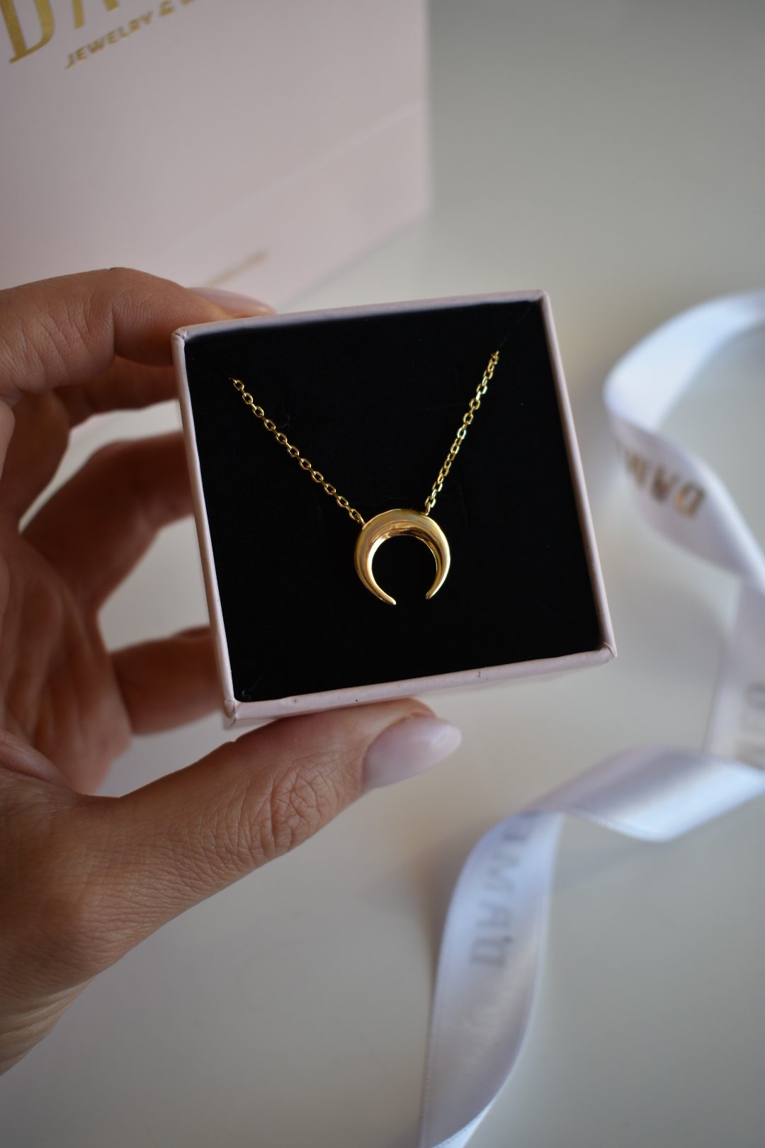 Ogrlica od srebra sa priveskom u obliku polumjeseca sa pozlatom.