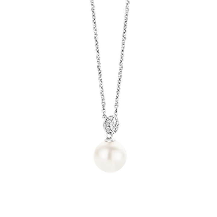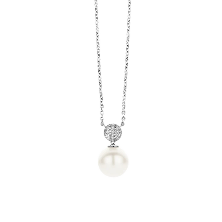 U srcu ove TI SENTO ogrlice nalazi se bijeli biser, pričvršćen za disk ukrašen cirkonima, što joj daje dodatnu, nježnu notu elegancije. Ogrlica je izrađena od srebra i završno je obrađena rodijumskim premazom, koji ovom komadu nakita daje veći sjaj i dodatnu izdržljivost.