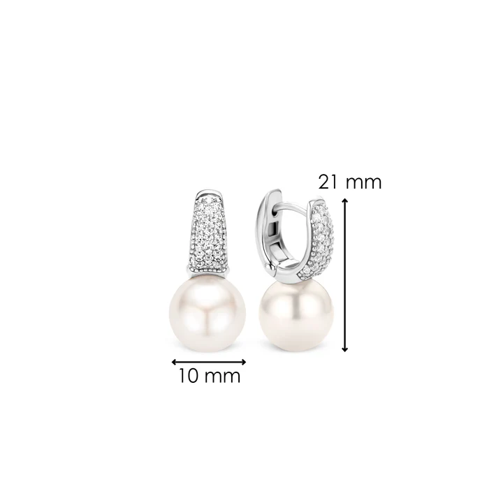 Ove TI SENTO minđuše s oznakom 7750PW pravi su klasici. Gornji dio minđuša ručno je postavljen niz cirkona, koji im daje prelijepu, blistavu površinu. Na donjem dijelu vise bijeli Swarovski biseri prečnika 10 mm.