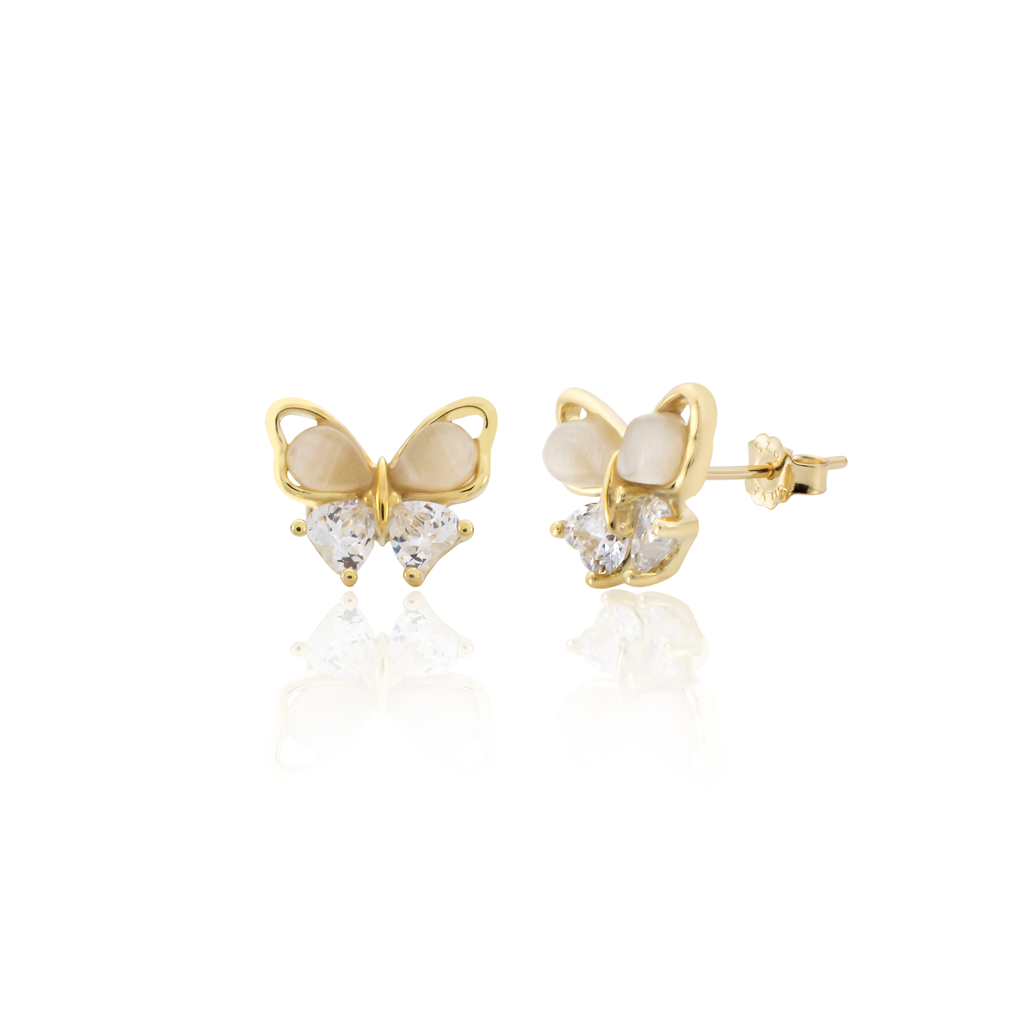 Unesite nežnost prirode u svoj svakodnevni stil uz ove unikatne minđuše u obliku leptira. Dizajn ovog modela spaja toplinu pozlate sa prefinjenim sjajem sedefa i blistavim kristalima. Donji deo krila leptira čine dva cirkona u obliku srca, dok gornji delovi krila odišu mlečnim sjajem sedefa, stvarajući savršen balans između luksuza i romantike.