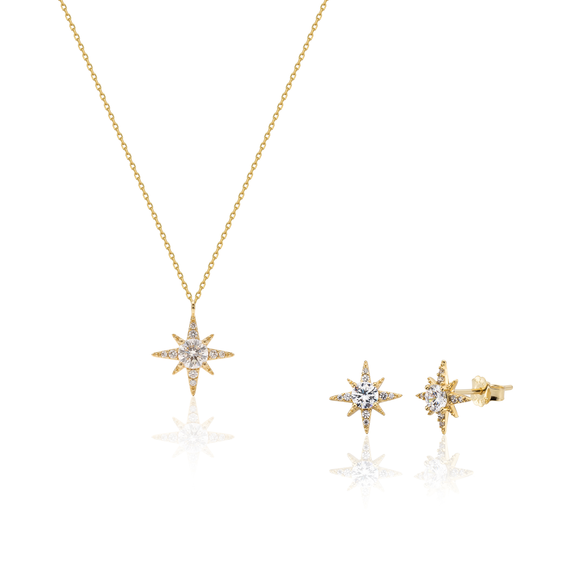 • Dizajn: Centralni motiv ogrlice i minđuša je zvijezda sa osam krakova. U samom središtu se nalazi krupan, brilijantno brušen  cirkon, dok su kraci zvijezde dodatno ukrašeni nizom sitnijih kamenčića za maksimalan efekat blistavosti.