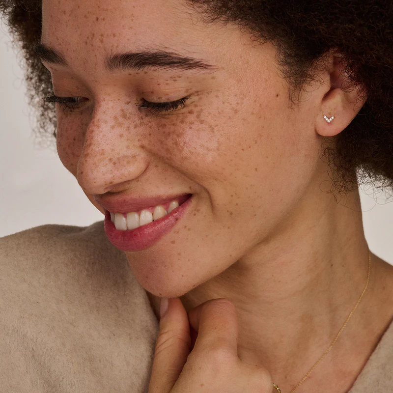 Ove minđuše od 14-karatnog žutog zlata odišu jednostavnošću, razigranošću i sjajem zahvaljujući cirkonima postavljenim u pavé tehnici. V-model je visok 3,9 mm i širok 5,9 mm, te se savršeno uklapa i kombinuje s drugim komadima nakita za uši iz naše kolekcije.