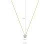 Ogrlica od 14-karatnog žutog zlata sa okruglim priveskom ukrašenim cirkonom i okvirom od bijelog zlata.